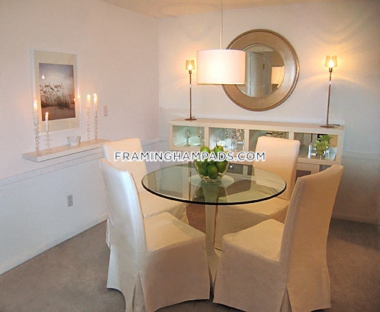 This Luxury building can offer you fantastic rents with the finest amenities. Our privately owned Limousine drives you anywhere you need to go within our "golden miracle miles". Some of our doctors take it to Logan Express, our researchers take it to Genzyme, our professors to Framingham State, while other residents take it to the mall, movies, restaurants and appointments. FREE Community Amenities: • Olympic-Size Swimming Pool • Limousine Service • Special Roommate Apartments • Concierge Service • Business Center with Computer, Fax & High Speed Wireless Internet • DVD Lending Library • Continental Pastry Buffet 7 Days a Week • Open Hearth Bar-B-Que • Shuffle Board Courts • Picnic Recreation Area • Lush Landscaping with Abundant Flowers • Walk to Market • Bus Stop within Walking Distance Apartment Amenities Include: • FREE Heat • Free Hot Water • Air Conditioning • Concierge Service • High Speed Internet Access & Cable-Ready Availability • Laundry Room • Extra Storage • Full complement of appliances • Some with Balconies • 24 Hour Maintenance Service • Country flowered courtyards • Tree Lined Streets • Direct Train Service to Boston • Mass Pike, Rt 128, 495. I-290, Logan Express